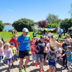 W zasadzie Dzień Dziecka na Sportowo. Areną zmagań najmłodszych był teren Campingu Sudety nad bielawskim jeziorem. Jednak zanim wszystko się rozpoczęło to wraz z Patrykiem Chrzanowskim, najlepszym lokalnym biegaczem asfaltowym przeprowadziliśmy wspólną i profesjonalną rozgrzewkę dla przedszkolaków w Sportowym Przedszkolu Niepublicznym w Bielawie. Radości było co nie miara, aż nie chciało się pędzić na rozpoczęcie Dnia Dziecka na jeziorze.